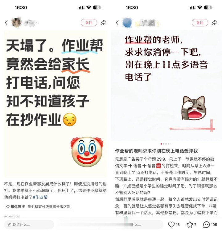 在众多被投诉品牌中,作业帮学习机成为焦点。无论是媒体报道还是社交平台的分享,其中有大量用户在购买作业帮学习机后,都会频繁接到客服的电话,要求购买教培课程,这也成为作业帮学习机最大的槽点。真有那么严重?为了探寻其中真相,我们开始了对作业帮学习机的深度调查。