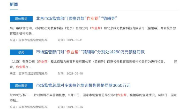 市场监管总局也多次因为作业帮违规进行教培服务进行顶格罚款,所宣传的金牌辅导、一对一答疑以及线上课程,其中不少都是违反有偿教培服务相关规定的,也许正如卖课客服说的一样,作业帮学习机的确没什么用,只是一个获取精准用户信息的渠道,最终还是要参加有偿教培才行。